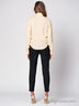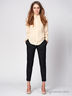 Детали: отложной воротник, застежка на пуговицы, длинный прямой рукав присборен на манжету, полочка декорирована простроченными складками