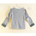 Модель прямого кроя застегивается на пуговицы. Ворот декорирован рюшей. Множественные нашивки на полочке.