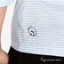 Рубашка из натурального хлопка в тонкую голубую полосу. В качестве отделки - белый воротничок, планка пуговиц, и отвороты на рукавах. Спереди выполнена манишка, с вышитой фирменной эмблемой.