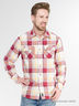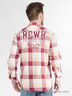Рубашка с длинными рукавами, итальянский воротник. Центральная застежка на пуговицы. Принт на спинке. Ткань в клетку. Прямой силуэт, длина ниже линии бедер.