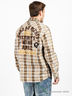 Модная рубашка прямого кроя из хб материала. Отложной воротник-стойка. Длинные рукава с манжетами на пуговице. Застежка на пуговицы. Полочки украшены накладными карманами на пуговице. Сзади оригинальная нашивка.