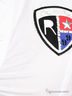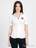 Модная рубашка из хб материала. Отложной воротник-стойка. Укороченные регулируемые рукава. Спереди застежка на пуговицы. На полочке оригинальная нашивка.