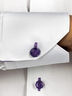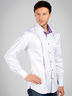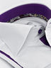 Оригинальная эксклюзивная французская рубашка выполнена из высококачественного итальянского хлопка премиум класса. Рубашка классического стиля с итальянским воротником с жесткими вставками для сохранения его формы. Стойка воротника с одной пуговицей. Удлиненный рукав с маленькой пуговицей на шлице и одинарный манжет. Для отделки внутренней стойки воротника, манжет и пуговичной планки рубашки выбраны два вида ткани, контрастная и в цветочный рисунок. Изысканность рубашки подчеркивают фирменные пуговицы Jess France лилового цвета формы «Diamant» и лиловая нить, выбранная для обработки петель. На передней планке рубашки декоративный разрез, отделанный контрастной тканью. Ластовица из контрастной ткани, вшитая между полочкой и спинкой рубашки, добавляет элегантности.