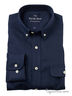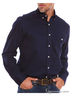 Стильная рубашка темно-синего цвета. Модель с отложным воротником и длинными рукавами, имеет застежку на пуговицы и накладной карман.