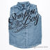 Детали: отложной ворот-стойка, без рукавов, застежка на пуговицы, аппликации, эффект потертости