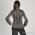 Рубашка в полоску в классическом стиле с модными деталями. Модель приталенная, спереди и сзади по две вытачки. Горловина декорирована лентами из той же ткани, которые формируются в бант. Застежка спереди на пуговицы. Низ рукава выполнен из притачной детали, скроенной «по косой», и присборенной по верхнему и нижнему краю, что добавляет рукавам объем в нижней части. Рубашка очень женственная, отлично подойдет как для ежедневного офисного гардероба, так и для официального мероприятия.