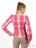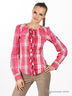 Детали: круглая горловина, застегивается на пуговицы, планка спереди декорирована рюшами, длинные рукава с манжетами на пуговицах