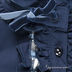 Детали: ворот-стойка, застежка на пуговицы, манжеты на пуговицах, фигурные вытачки, ворот украшен бархатной лентой с бантиком, планка-застежка оформлена оборками, манжеты декорированы оборками, на спинке вышивка и стразы