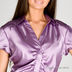 Рубашка с коротким рукавом-фонариком. Модель прекрасно садиться по фигуре за счет небольших драпировок спереди и по линии кокетки, а также четырех вытачек на спине. Застежка на пуговицы выполнена не до самого воротника, что позволят оставить открытый v-образный вырез на груди. Великолепный выбор для любого случая.