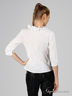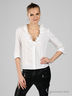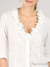 Детали: глубокий V-образный вырез декорированный рюшами, застегивается на пуговицы, рукава 3/4 с манжетами
