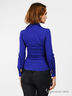 Стильная рубашка приталенного силуэта. Отложной воротник-стойка. Длинные рукава с манжетами. Застежка на пуговицы. Спереди модель украшена оригинальной драпировкой.