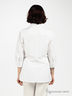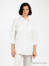 Льняная рубашка свободного покроя. Отложной воротник. Планка-застежка на металлических пуговицах с эмалевыми вставками. Два накладных нагрудных кармашка со вставками хлопковой кружевной ленты. Рукав 7/8, манжеты фиксируются двумя пуговичками.