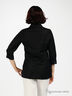 Льняная рубашка свободного покроя. Отложной воротник. Планка-застежка на металлических пуговицах с эмалевыми вставками. Два накладных нагрудных кармашка со вставками хлопковой кружевной ленты. Рукав 7/8, манжеты фиксируются двумя пуговичками.
