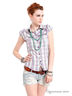 Приталенная рубашка из хлопка, на пуговицах, линия груди подчеркнута небольшими воланами, рукав короткий, воланчиком.
