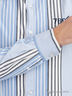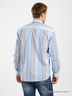Рубашка в полоску с длинными рукавами и отложным воротником, вышивка на груди. Спереди центральная застежка на пуговицы.