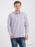 Рубашка в трехцветную полоску с длинными рукавами и с отложным воротником, нагрудный карман с нашивкой "флаг".