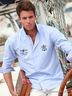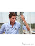Рубашка в мелкую клетку с длинными рукавами, вышивка "якорь" сбоку и вышивка "парус" справа, изнанка кокетки сзади и основания воротника в полоску.