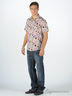 Мужская рубашка с короткими рукавами из легкого хлопка. Отложной воротник на стойке. Застегивается на пуговицы. На полочке один накладной карман.