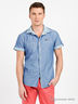 Эффектная рубашка из тонкой, мягкой хлопковой ткани. Двойной стояче-отложной ворот. Застежка на кнопки. Прямые короткие рукава с отворотами и патами на кнопках. Два накладных кармана на полочках. Ворот и отвороты рукавов выполнены из контрастной ткани. Отличный вариант на каждый день!