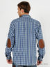 Детали: отложной ворот-стойка, застежка на пуговицы, длинный рукав с нашивками на локтях, манжета на пуговицах, два нагрудных кармана