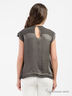 Блуза с короткими рукавами и округлым вырезом горловины. Изделие свободного покроя. Вырез украшен декоративным воротничком с вышивкой из бисера. Отличный вариант для уверенной в себе леди.
