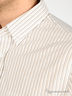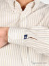 Прекрасная рубашка с отложным воротничком, длинными рукавами и застежкой на пуговицы. Украшена контрастными полосами.