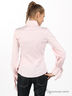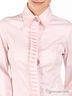Детали: отложной воротник на стойке, застегивается на пуговицы, передняя планка декорирована рюшами, длинные рукава с манжетами на завязках