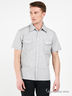 Классическая рубашка с коротким рукавом, декорированным по низу резинкой, свободного силуэта, спереди два накладных кармана на груди, ворот сделан из резинки