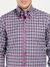 Детали: отложной рубашечный ворот, застежка на пуговицы, манжеты на пуговицах, крупный принт "клетка"