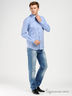 Детали: отложной рубашечный ворот, застежка на пуговицы, манжеты на пуговицах, контрастная полоска