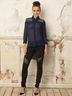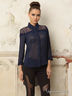 Рубашка с длинными рукавами и отложным воротником. Удлиненный покрой сзади. Модель декорирована вставкой из кружева ручной работы.