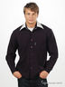 Детали: Застежка на пуговицы, отложной воротник контрастного цвета , длинный прямой рукав с манжетой на пуговице, фигурный крой низа