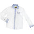 Классическая модель с отложным воротником застегивается на пуговицы. Декоративная аппликация на полочке.