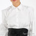 Белая блузка с рукавами-фонарик и черным корсетным поясом.