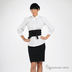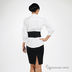 Белая блузка с рукавами-фонарик и черным корсетным поясом.