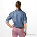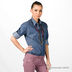 Стильная рубашка приталенного силуэта с длинным рукавом в стиле Casual "под джинсу". Пройма и вытачки декорированы контрастной отстрочкой красного цвета. Рубашка в стиле CASUAL, очень элегантна и изысканна. Ее можно носить как с костюмом, так и с повседневной одеждой.