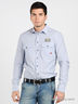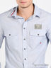 Детали: отложной воротник на небольшой стойке, оригинальная вышивка на воротнике, два накладных кармана с клапаном на пуговице, длинные рукава с широкой манжетой на пуговицах.