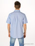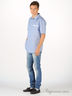 Хлопковая рубашка с короткими рукавами.Отложной воротник на стойке. Застегивается на пуговицы. Спереди небольшой карман на пуговице.