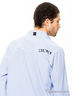 Рубашка в очень тонкую полоску. Застежка на пуговицы, манжеты с пуговицами. Нагрудные карманы. Нашивка на одном из карманов. Контрастная отделка с изнанки воротника. Вышивка на кокетке сзади. Нашивка на воротнике сзади. Рубашечный низ. Размер РФ указан по обхвату шеи в см.