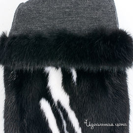 Брошь Русский мех ЦВЕТОК женская, цвет черно-бежевый