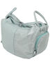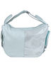 Женская повседневная сумка-рюкзак голубого цвета из эко кожи. Высота ручки 12 см. Снаружи, сбоку есть карман на молнии. Два основных отделения, закрывающиеся на застежку "молния". Внутри отделение на молнии и два кармана для мобильного телефона. Фурнитура - серебристая. Украшена сумка сеткой и серебристой эко кожей. Размер 30х15х27 см.