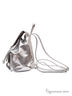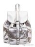 Рюкзак из искусственной кожи серебристого цвета. Плечевые ремни регулируются по длине, что позволяет добиться плотного прилегания рюкзака, способствуя формированию правильной осанки. Ручка для переноски в руке. Вместительное основное отделение с застежкой на пряжку. Спереди рюкзака расположен накладной карман для мелочей, закрывающийся также на пряжку. Три внутренних кармана для мелочей, один из которых на застежке-молнии.