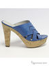 Прекрасные кожаные сабо на каблуке и танкетке. Верх изделия оформлен красивым плетением ремешков и крупной сторчкой. Материал и цвет верха:кожа синего цвета.Подкладка и стелька:кожа.Высота каблука ок. 12,5 см, высота танкетки ок 4 см.Обтяжка каблука и танкетки-натуральная пробка.Меньше на размер.Сделано в Бразилии.