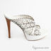 Сабо женские из натуральной кожи белого цвета. Удобная форма. Округлый, слегка заостренный мысок. Открытая пятка. Тонкая серая подошва соединена с изделием клеевым способом крепления. Высокий каблук шпилька с набойкой, коричневого цвета. Стелька и внешняя платформа выполнена из кожи белого цвета. По всему полотну сделана перфорация.