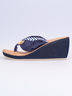 Классические сабо синего оттенка дополнены высокой платформой. Традиционный силуэт в современном исполнении станет украшением Вашего летнего образа.