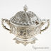 Сахарница + ложечка с красивым рисунком под старину. Емкость для сахара изготовлена из стекла, корпус сахарницы металлический, покрыт сплавом серебра и никеля.