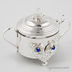 Сахарница + ложечка с красивым рисунком под старину. Емкость для сахара изготовлена из стекла, корпус сахарницы металлический, покрыт сплавом серебра и никеля.