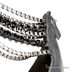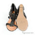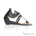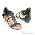 Стильные сандалии на небольшой танкетке. Сделаны в черном цвете из безупречно выделанной натуральной кожи. Сверху украшены множеством тонких ремешков со стразами. Подошва проклеена, сзади предусмотрена застежка на металлической молнии. Модный, удобный и практичный вариант обуви на лето.