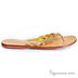 Замечательные сандалии без каблука. Верх представляет собой переплетение из кожи золотистого цвета, украшенной сверкающими кристаллами. Подошва проклеена. Красивый и удобный вариант летней обуви.