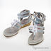 Модель с множеством ремешков и декоративными бантиками застегивается на липучку.